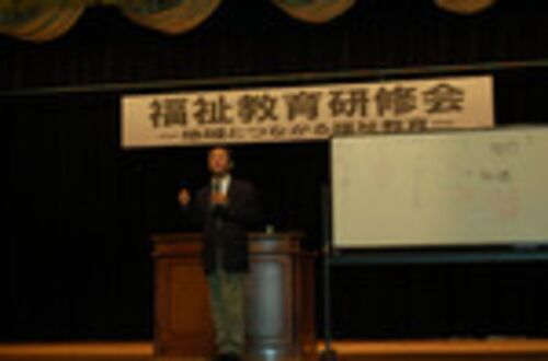 今日、寝屋川市立総合センターの講堂で、教育委員会と共催で福祉教育研修会を開催しました。 参加者は183名(幼稚園・小学校・中学校の先生40名、校区福祉委員106名、ボランティア31名、施設職員など2名)でした。 目的は、総合的な学習の時間が導入されて以…